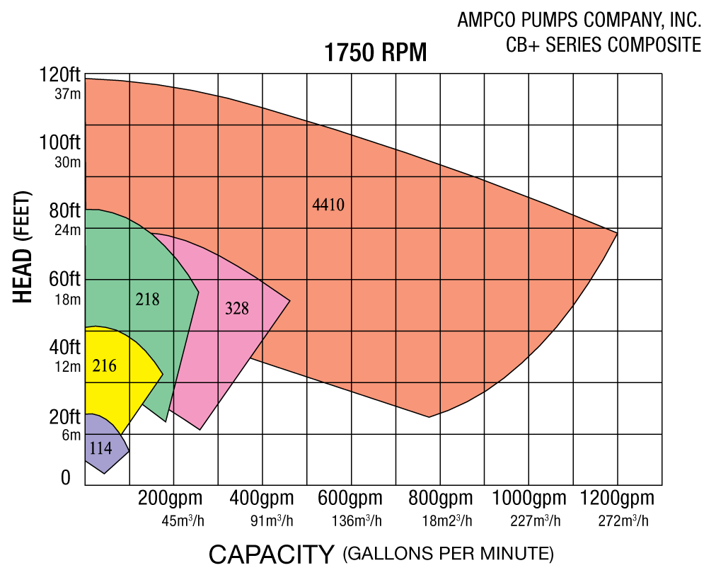Ampco CB+ Series Craft Brew Pump Performance @ 1750 RPM click to enlarge |
