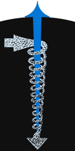 Feed from the pump discharge is piped into the inlet which enters tangential to the cyclone cone. The liquid therefore rotates at a high velocity, very much like a whirlpool.
