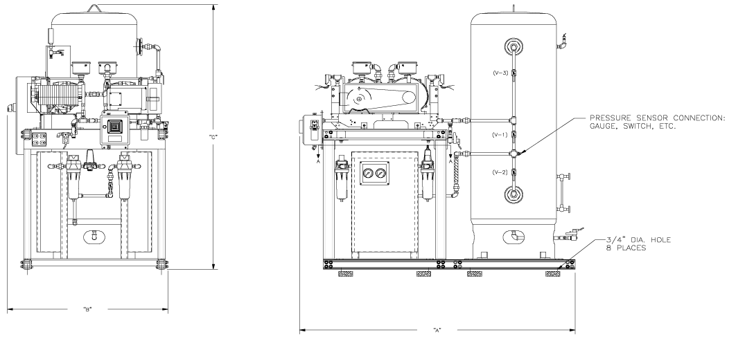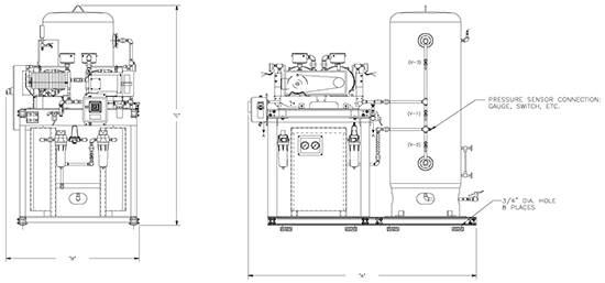 Ohio Medical Scroll Air System Dimensional Drawing (click to enlarge)